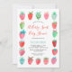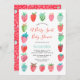 Este diseño de berry dulce tiene una bonita y moderna invitación a bañarse en una ducha dulce con fresas pintadas a mano en rojo y rosa con pequeños toques azules y verdes. Vea toda la colección para ver más elementos coincidentes. Obra de arte original de Caroline Bonne Müller