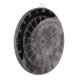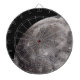 Curva de la luna con una imagen de la luna contra un cielo negro. La luna en un dardo. Los dardos perfectos combinan con el objeto recreativo para astrónomos o aficionados a la astronomía.