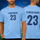 Elevate your athletic wardrobe with this Custom Short Sleeve Men's Active Shirt - shown in Blue with Navy Blue print. Colors can be customized. Design features a simple sporty design on the front and back with text that can be personalized with the team name, player's first and / or last name, and jersey number. Perfect for team events or personal workouts, this shirt combines style and functionality, ensuring you stand out on and off the field. Add it to your collection for a unique and personalized touch.