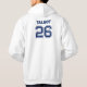 Bring the whole family team together with this customizable family reunion baseball jersey style hoodie! Designed with a classic athletic look, this hoodie features a small front emblem with your reunion details and a bold varsity-style custom name and number on the back, just like a sports jersey.