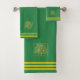 Custom golden tree and three stripes on forest green. Elegant modern towel set. Image only on one side.
