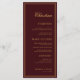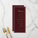 A burgundy and gold place card menu featuring elegant typography, refined accents, and space for the guest name. The rich color palette creates a timeless, upscale look ideal for formal weddings, evening celebrations, or fall events. This versatile piece works as both a menu and a place card, adding a polished, coordinated touch to each table setting.