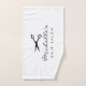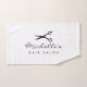 Custom hairdresser hand towel for hair salon. Custom hair salon towels with barber scissors silhouette outline logo. Elegant black and white design for hair stylist, hairdresser, store, barber shop, beauty salon, spa business, beautician etc. Add your own professional company name or quote. Classy modern script typography template.