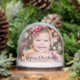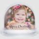 Simple and modern design featuring photo templates, front and back, with optional opaque white filter and custom calligraphy "Merry Christmas" text graphic and editable text field for personalization.