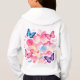 Lovely kids hoodie featuring colorful flower petals and butterflies printed on both the front and back. The front includes a customizable name for a special personal touch. Cozy, stylish, and perfect as a personalized gift for birthdays, holidays, or everyday wear kids will love.