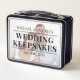 Customizable metallic wedding keepsakes box with the newlyweds' photo, names, and date, and space to add a message on the back. Choose between black, blue, silver, white, red, and green colors. To change the background color or fonts, please edit the template.