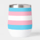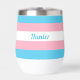 Tumbler de vino de bandera transgénero que se puede personalizar con tu nombre u otro texto. Apoye a sus amigos trans con este lindo regalo que incluye los colores de la bandera transgénero azul, rosa y blanco. Personaliza este bonito presente en azul.