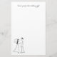 Cute arte de pareja recién casada en papel en blanco "gracias". Una imagen que representa a la novia y al novio, pareja caucásica, en la esquina inferior de este artículo personal.