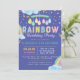 Divertido, colorido y caprichoso género neutro acuarela "sobre el arcoiris" diseño de la fiesta de cumpleaños en colorida paleta de rosa, azul, verde azulado, cal, naranja y morado. El diseño presenta un hermoso arco iris acuático y un ilustracion de nubes con confeti colorido, un patrón de puntos de polka de raindrop con falsos acentos de Relieve metalizado dorado para añadir una mirada mágica de nuevo un fondo morado profundo. El reverso de la invitación presenta un colorido confetti, un patrón de puntal de polka con falsos acentos de Relieve metalizado de oro, que se complementan con las obras de arte frontales. Todos los ilustraciones contenidos en esta mágica y colorida invitación a la fiesta de cumpleaños de color arcoiris son obras de arte originales hechas a mano por Moodthology. Puede personalizar el tamaño del texto, el color del texto, el tipo de letra y el diseño para su preferencia personal de diseño.