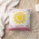 Una almohada personalizada "Eres mi sol". Un patrón de nube azul y blanco decorativo adorna la parte trasera de la almohada. Personalízala con el nombre de tu bebé o como regalo para una fiesta de bebé. Diseñado para ti por Blackberry Boulevard.