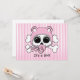 Calavera de niña y huesos cruzados con gorra rosa y pacificador.