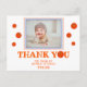 Modern Cute Basketball Birthday Gracias tarjeta de foto para niños. Gracias una postal para los niños - chica y niño, especialmente por su primer y segundo cumpleaños. El diseño tiene una foto infantil (inserte la tuya propia), y balones de cesto pequeños y grandes. El fondo es blanco. Personaliza la postal con tu foto y nombre. También puede cambiar el texto de agradecimiento y escribir el suyo propio.