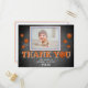 Tarjeta de foto para niños de cumpleaños moderna y educada de baloncesto. Gracias una postal para los niños - chica y niño, especialmente por su primer y segundo cumpleaños. El diseño tiene una foto infantil (inserte la tuya propia), y balones de cesto pequeños y grandes. El fondo es una pizarra gris de diseño. Personaliza la postal con tu foto y nombre. También puedes cambiar el mensaje de agradecimiento y escribir el tuyo propio. El texto es de diseño y blanco moderno.