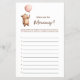 This adorable "Where Was the Mommy?" baby shower game features a sweet watercolor illustration of a baby bear holding a pink balloon. The text asks guests to guess where the mom-to-be was in each photo, with the person holding the most correct answers winning. It's a fun and engaging activity that adds a touch of whimsy to any baby shower celebration. The charming design is perfect for a woodland or bear-themed baby shower, creating lasting memories for the parents-to-be and their guests.