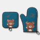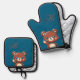 Cute Bear Oven Mitt and Pot Holder Set – Teal Blue