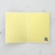 Esta tarjeta de agradecimiento doblada tiene un fondo amarillo brillante con un gatito negro adorable. Encima de la cabeza del gatito hay una hilera de hermosas flores de color amarillo, agua y azul. Tiene una linda cinta rosa en el cuello. ¡Una tarjeta perfecta para un amante de los gatos!