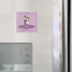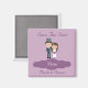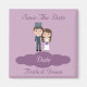 Ilustracion Sweet Bride & Groom sobre un fondo lila en un imán de "Salven la fecha". Edite el texto para añadir los nombres de la novia y del novio y la fecha del boda. Todo el texto es personalizable - muchas fuentes y colores diferentes de donde elegir. Una forma divertida de recordar a sus huéspedes su cita con el boda. Por favor visite mi tienda Molly Sky para más diversión y adorables cosas de boda y muchos productos para todos - ¡hasta el perro de la familia!
