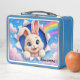 Add a soft and magical touch to everyday routines with this adorable bunny design. Featuring a fluffy, wide-eyed rabbit bursting through the sky surrounded by pastel clouds, sparkles, and a bright rainbow, this artwork is full of charm and gentle, playful energy.