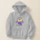 A whimsical cartoon-style illustration of a cheerful Capricorn creature. The top half is a fluffy, light beige goat with expressive black eyes, tiny horns, and a joyful smile. It wears a ruffled, iridescent purple top that transitions into a shimmering, deep purple fish tail. Rendered in a soft, slightly textured style reminiscent of children’s book illustrations, the character is brightly lit against a solid black background, emphasizing its playful and magical design. Perfect for zodiac-themed products, gifts, posters, apparel, and home décor.