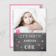 Cute Chalkboard Pink 1st Birthday Invitation Card para una bebé. La tarjeta tiene bonitas estrellas rosas en la parte delantera y en la parte trasera y una textura de pizarra. Añade tu foto a la plantilla y personaliza la tarjeta con tus detalles.