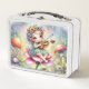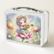 Pequeño y caprichoso chica de hadas de anime interpretando el violín en la cima de una flor rosa rodeada de flores y hongos.