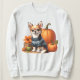 El Chihuahua es un lugar de lo más agradable, rodeado de vibrantes decoraciones otoñales, con calabazas y flores naranjas de temporada, vestido cálidamente con un elegante suéter de punto, perfecto para los temas de otoño o para los acogedores conceptos de temporada.