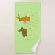 Esta impresionante toalla de baño cuenta con un par de lindos conejitos de Pascua rodeados de flores de daffodil amarillas. Los conejos son marrones con orejas grandes, ojos negros y colas blanquecinas. Uno de los conejillos sostiene un huevo de Pascua con un arco violeta de bonito y se acerca para ofrecerlo al otro conejito. Los folletos son amarillos y tienen un centro naranja luminoso.