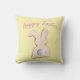 La almohada de tiros de Semana Santa. almohada de tiro amarillo con la parte posterior de un conejito de cola de cottontail con las palabras "Feliz Pascua" en una tipografía divertida.