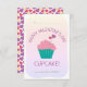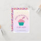 Esta tarjeta de El día de San Valentín de clase plana presenta una imagen de un quequito lindo acentuado con corazones. El texto de la tarjeta dice: ¡Feliz pastel de San Valentín! El fondo de esta adorable carta es un patrón cardíaco en rosa, púrpura y amarillo.