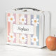 Esta bonita lonja de almuerzo combina margaritas blancas con un fondo rayado en tonos pastel. Personalizable fácilmente con tu nombre. Ideal para volver a la escuela o como regalo.