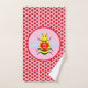 Esta impresionante toalla de mano tiene un lindo Valentines Bee. El Bee tiene un cuerpo amarillo peludo con rayas negras y antenas rojas. Se sostiene sobre un trozo de panal de miel con forma de corazón rojo y está rodeado de girasoles. Cada flor tiene pétalos rojos para coincidir con la abeja romántica y un centro negro. Hay un texto blanco en medio del peine de miel que dice el mensaje romántico "Mina de abeja". Esta pequeña abeja es ideal para mostrar tu amor por alguien especial. Hay un patrón de girasoles rojos que rodean la abeja.