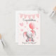 Bienvenidos a un precioso chica de recién nacido con esta encantadora tarjeta con un adorable elefante bebé con un globo rosado, rodeado de suaves corazones acuarelas y un cartel floral. El dulce diseño pastel es perfecto para celebrar la llegada o la ducha de bebé. Fácilmente personalizable dentro para un mensaje personal lleno de amor y alegría.