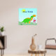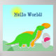 Familia de Dinosaurios Cute con Póster de Huevo de Bebé Dino Rosa. Felices dinosaurios cartoon Diplodocus verdes y naranjas con huevo de bebé dino rosa en un paisaje soleado y brillante con sol en el cielo. Este bonito póster de dibujos de dinosaurios es totalmente personalizable, cambia el texto "Hola Mundo" y añade tus textos e imágenes. Un gran regalo de impresión de póster de dibujos de dino