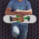 ¡Mira quién quiere ir a patinar hoy! ¡Es el Sr. Cute Green Frankenstein! ¡Tiene una sonrisa en su cara y está listo para rodar! ¡Un divertido y bonito skateboard de diseño Frankenstein!
