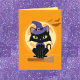 Cute gato negro en la escoba Tarjeta Halloween