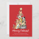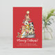 Envíe sus saludos navideños este año con este lindo diseño personalizado que presenta un adorable ilustracion de nueve gatos formando un árbol de Navidad con luces, una estrella en la parte superior y las palabras "¡Meowy Catmas!" sobre un fondo rojo. Personalízalo con tu(s) saludo(s) y nombre(s).