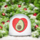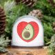 A cartoon style avocado in a red heart. Custom snow globe with unique design. Gift idea for avocado lovers.