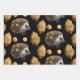 Cute Papel De Envoltura Colorido De Hedgehog . Hedgehog parado en medio del papel con hojas de oro y plata alrededor. Corta pequeñas hojas de papel de envoltura natural y de vida silvestre. Los niños escriben para su cumpleaños u otro.