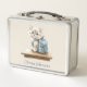 Make lunchtime extra special with this personalized metal lunch box featuring an irresistibly cute kitten wearing a blue backpack! Perfect for school, daycare, or field trips, this charming lunch box can be customized with your child's name or initials, making it both practical and personal. A delightful gift for little cat lovers and a stylish addition to any back-to-school set!