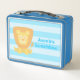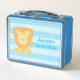 León naranja personalizado con franjas brillantes para el fondo. Para cualquiera que ame el león o nazca bajo el horóscopo Leo. ¡Una adorable caja de almuerzo para que los jóvenes lleven a la escuela!