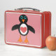 Esta impresionante lonchera metalizado presenta un personalizado lindo de un pingüino con ojos grandes, un pequeño pico y unos pies lindos. El pingüino tiene un gran corazón de amor rojo en medio de su vientre y las alas están abiertas y listas para darle a alguien un gran abrazo.