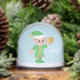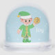 Cute lucky elf dressed in green and holding a gold coin with text Snow Globe. Text can be personalized. Ideal for christmas, birthday, party favor, baby shower favor and more.