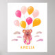 Cute Oso de Peluche Globos Rosas Póster Nombre del