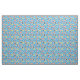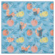Esta tela linda tiene fondo azul con pandas rojos, manzanas rosadas y amarillas, y hojas de bambú. Puedes encontrar productos de panda rojo a juego en mi tienda.