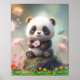Cute Panda sentado en el arte de los jardines flor