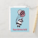 Un lindo panda que está usando un gorra a rayas fiestas se aferra a globos con varios patrones. ¡Los patrones incluyen corazones pequeños, chevron y círculos! Personaliza esta adorable postal con tu saludo de cumpleaños para el chica de cumpleaños! ¡Se puede cambiar el color de fondo!