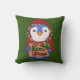Un lindo y gracioso pinguino azul con una cubierta roja con pompas amarillas, verdes y azules, sostiene un tablero con un dicho "Feliz Navidad".