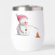 Botella de agua dulce con un ilustracion de un muñeco de nieve con un gorra rosa y malvaviscos asados con bufanda. Gran regalo para las próximas vacaciones. Personalice el texto con su propio mensaje. Ilustrado y diseñado por Patricia Álvarez.