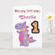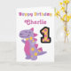 Celebrar un especial primer cumpleaños con el adorable, brillante y colorido cumpleaños de los dinosaurios. Personalice el nombre para crear la tarjeta perfecta.