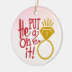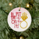 Él finalmente puso un anillo. Divertido adorno para el chica que ha estado esperando, y esperando. El diseño tiene un anillo de compromiso con chispas de oro. Maravilloso regalo de Navidades para los recién contratados.